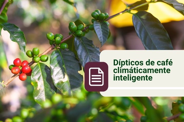 Material para técnicos de café en los cuales se brinda información sobre café climáticamente inteligente en el marco del Proyecto Amazonía Connect.